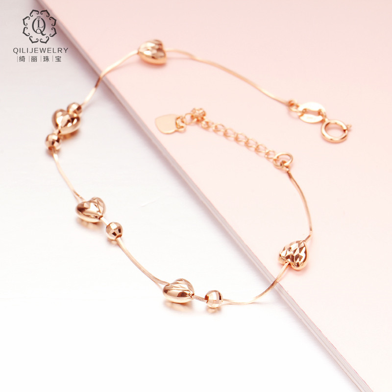 绮丽珠宝正品俄罗斯585紫金蛇骨爱心手链14k金玫瑰金彩金小众设计热门设计联盟服务商